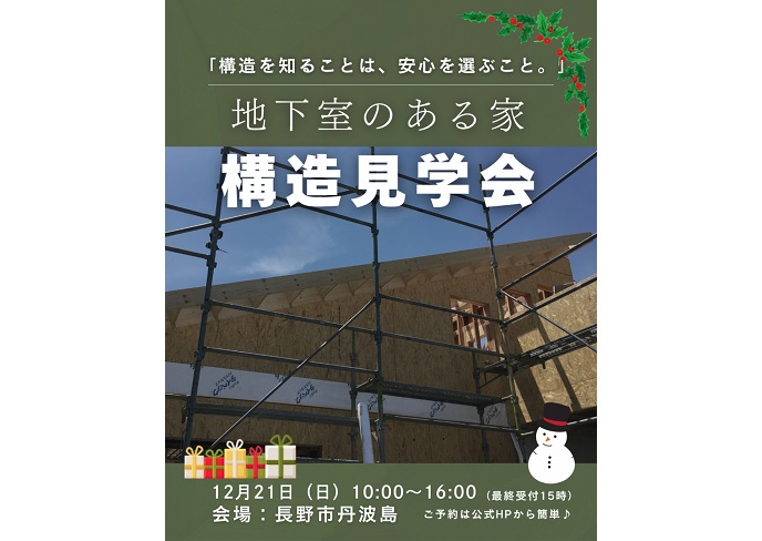 12/21日 10:00〜16:00(最終受付15:00) 長野市丹波島3丁目ミツヤジーホームから、構造見学会のお知らせです。